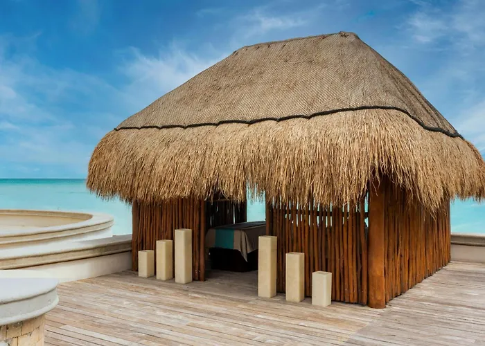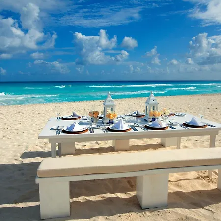 Este hotel de lujo se ubica frente a la playa y cuenta con un extenso spa que ofrece tratamientos exclusivos. Sus suites disponen de balcón privado y vistas al océano. Con una oferta gastronómica que incluye una experiencia culinaria premiada, este resort también ofrece acceso a una piscina grande. Perfecto para familias, incluye un club infantil y varias actividades recreativas. Se encuentra cerca de lugares icónicos como la Isla Mujeres y las ruinas de El Meco.