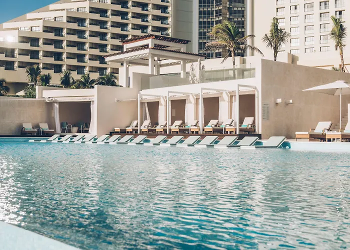 Este complejo combina lujo y comodidad con amplias villas frente al mar. Su spa ofrece tratamientos ergonómicos, mientras que sus cuatro piscinas ofrecen acceso directo al área de playa. Con categoría 5 estrellas, cada habitación está equipada con tecnología moderna y vistas impresionantes. Además, su ubicación cercana a La Isla Shopping Village facilita el acceso a compras y entretenimiento. Esto lo convierte en un alto estándar de alojamiento en Cancún.