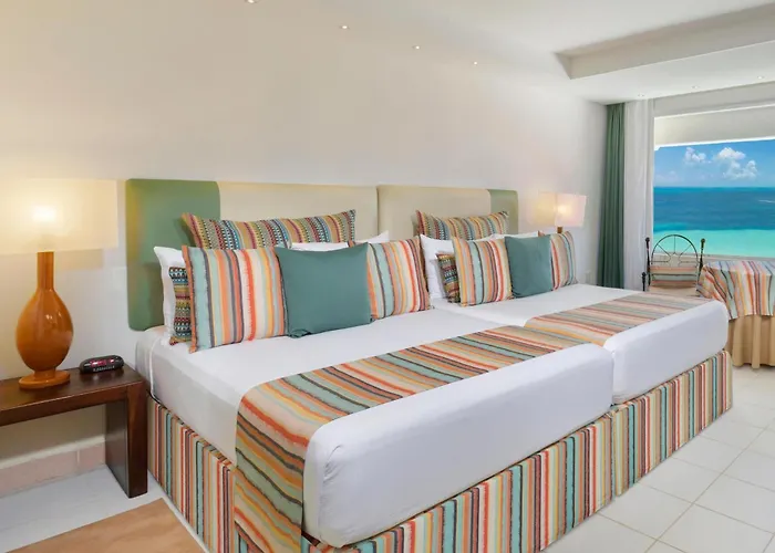 Inaugurado en 1980, este hotel ofrece vistas impresionantes al Caribe y acceso directo a la playa. Sus 275 habitaciones son amplias y están equipadas con comodidades modernas. Los huéspedes disfrutan de múltiples opciones gastronómicas y un parque acuático para toda la familia. Además, el hotel cuenta con un gimnasio y actividades recreativas para mantener a todos entretenidos. Su ubicación permite un fácil acceso al centro de Cancún y sus atracciones turísticas.