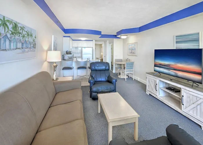 Daytona Beach Resort Condos provides comfortable stays a few steps from the beach equipped with kitchenettes for convenience. Each unit has a flat-screen TV and private bathroom. Guests enjoy free Wi-Fi and parking. The property's location provides easy access to beaches and local dining choices, enhancing the overall guest experience.